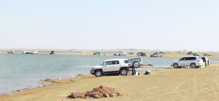 «روضة العكرشية» تتحول إلى بحيرة والمتنزهين يستمتعون بشواطئها..