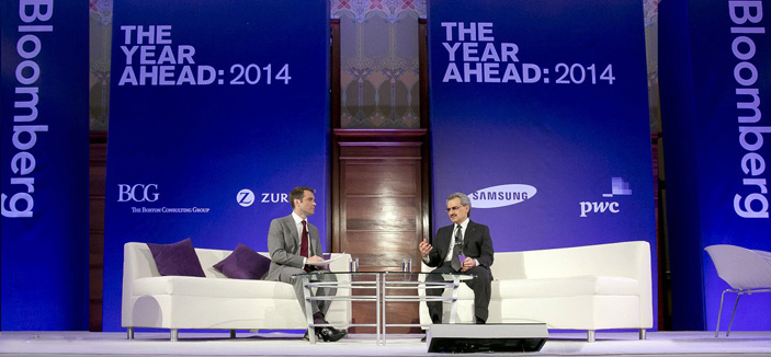 حضر صاحب السمو الملكي الأمير الوليد بن طلال بن عبد العزيز آل سعود، رئيس مجلس إدارة شركة المملكة قمة بلومبرج للأعمال المقام في مدينة شيكاغو في الولايات المتحدة الأمريكية يوم الأربعاء 17محرم 1435هـ الموافق 20 نوفمبر 2013م، وذلك بحضور وفد من شركة المملكة القابضة والمكتب الخاص لسمو الأمير. وشارك الأمير الوليد في حلقة نقاش في المؤتمر بعنوان «حوار مع الأمير الوليد» وأجرى سمو الأمير الوليد محادثة تمحورت حول الاقتصاد العالمي واستثمارات الأمير الوليد وشركة المملكة القابضة المحليَّة والإقليميَّة والعالميَّة بالإضافة إلى إستراتيجية سمو الأمير الاستثمارية والإدارية.
