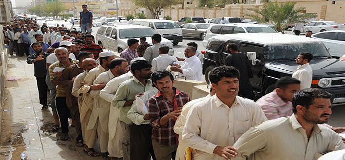 أعلنت وزارة العمل، أمس أن إحصائيات الأسبوعين الأولين من الحملات التفتيشية في جميع مناطق المملكة للتأكَّد من التزام أصحاب العمل والمنشآت بنظامي الإقامة والعمل بعد انتهاء المُهلة التصحيحية التي أمر بها خادم الحرمين الشريفين الملك عبد الله بن عبد العزيز -حفظه الله-، أسفرت عن رصد (752) مخالفة جسيمة من إجمالي نحو عشرة آلاف زيارة قامت بها فرق التفتيش، خلال الفترة (من 1 إلى 15 محرم الجاري).