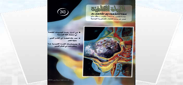 مجلة «الحياة الثقافية» التي تصدر عن وزارة الثقافة بالجمهورية التونسية صدر مؤخراً عددها (243) وتضمن دراسة عن أسرار رغبة التونسيات الجامحة في استعمال اللغة الفرنسية.وموضوع عن الفنون.. ومقال للباحث منصور الشتوي بعنوان: (بأي مفهوم ندرس المعجم؟).