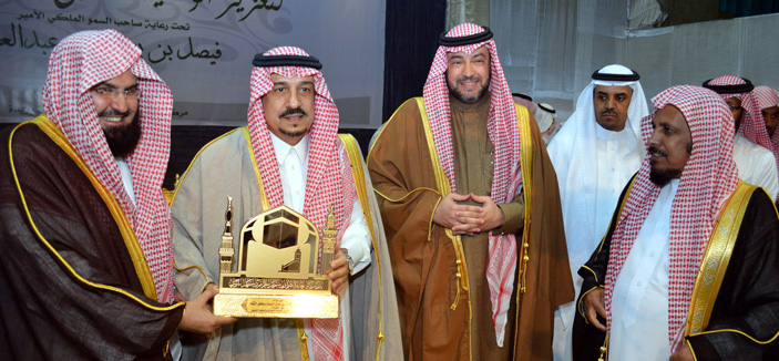 رعى صاحب السمو الملكي الأمير فيصل بن بندر بن عبدالعزيز امير منطقة القصيم الحفل الختامي للندوات الشهرية لتعزيز الوسطية وتحقيق الأمن الفكري بمنطقة القصيم، وذلك مساء أمس الأول في مركز الملك خالد الحضاري بمدينة بريدة، والذي نظمه فرع وزارة الشئون الإسلامية بالمنطقة بحضور فضيلة الرئيس العام لشؤون المسجد الحرام والمسجد النبوي وإمام الحرم المكي الشريف الشيخ الدكتورعبدالرحمن بن عبدالعزيز السديس وعدد من أصحاب المعالي والسعادة والمسئولين بالمنطقة وضيوف الحفل.