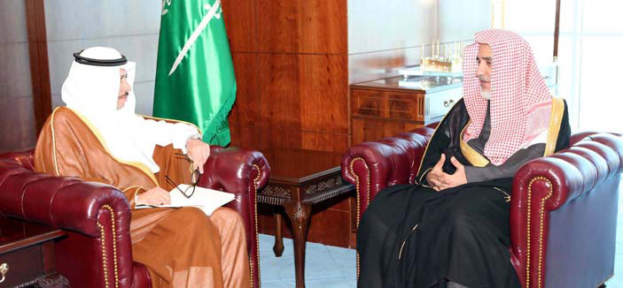 استقبل معالي وزير الشؤون الإسلامية والأوقاف والدعوة والإرشاد الشيخ صالح بن عبدالعزيز آل الشيخ، في مكتبه بالوزارة، سفير خادم الحرمين الشريفين المعين لدى مملكة البحرين عبدالله بن عبدالملك آل الشيخ، وسفير خادم الحرمين الشريفين المعين لدى كندا نايف بن بندر السديري، كلا على حدة. وجرى خلال الاستقبالين تبادل الأحاديث الودية، وبحث عدد من الموضوعات ذات الاهتمام المشترك.