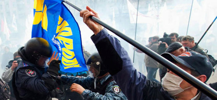 فضت وحدات خاصة من الشرطة الأوكرانية مظاهرة بالقوة في العاصمة كييف صباح أمس السبت، وتواترت تقارير عن إلقاء القبض على العشرات. وقال معارضون للحكومة أيضاً إن العشرات أُصيبوا أثناء عملية الفض في وسط كييف بعدما استخدم رجال الشرطة الهراوات. وكان نحو 10 آلاف شخص قد نظموا تظاهرة احتجاجاً على قرار الحكومة بتعليق العمل باتفاقية شراكة وتجارة مع الاتحاد الأوروبي، كما طالبوا باستقالة الرئيس فيكتور يانوكوفيتش. وقال شهود إن شرطة مكافحة الشغب في العاصمة الأوكرانية كييف استخدمت الهراوات وقنابل الصوت لتفريق مئات من المحتجين المؤيدين للاتفاق مع الاتحاد الأوروبي من ميدان الاستقلال، وهاجمت الشرطة المحتجين الذين ظلوا معتصمين في الميدان بعد أكبر مظاهرات الليلة الماضية ضد قرار الرئيس فيكتور يانكوفيتش بعدم التوقيع على اتفاقية تاريخية بشأن التجارة مع الاتحاد الأوروبي. وتزايدت حدة التوتر في كييف منذ يوم الجمعة عندما تراجع يانكوفيتش عن التوقيع على المعاهدة مع زعماء الاتحاد الأوروبي في اجتماع قمة في ليتوانيا ناقضاً تعهداً بالعمل نحو اندماج أوكرانيا في التيار الرئيسي للاتحاد الأوروبي. وقال معارضون سياسيون في أوكرانيا إن يانكوفيتش سرق حلم الاقتراب من الاندماج في أوروبا. وردَّد نحو عشرة آلاف متظاهر هتافات مؤيدة للاندماج مع أوروبا في ميدان الاستقلال في العاصمة الذي كان ساحة للثورة البرتقالية في عامَي 2004 و2005 التي أحبطت محاولة يانوكوفيتش الأولى للفوز بالرئاسة. وقال فيتالي كليتشيكو بطل الملاكمة في الوزن الثقيل، الذي يعتزم خوض انتخابات الرئاسة في عام 2015 اليوم: سرقوا حلمنا في أن نعيش في بلد طبيعي.