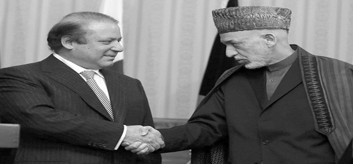 - كابول: الرئيس الأفغاني حميد كرزاي يصافح رئيس الوزراء الباكستاني نواز شريف الذي وصل أمس إلى كابول في زيارة هي الأولى له منذ فوزه بالانتخابات في مايو الماضي. (رويترز)