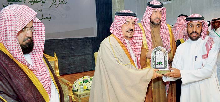 كرم صاحب السمو الملكي الأمير فيصل بن بندر بن عبدالعزيز أمير منطقة القصيم جريدة «الجزيرة» وذلك خلال رعاية سموه حفل اختتام برنامج الندوات الشهرية لتعزيز الوسطية وتحقيق الأمن الفكري بمنطقة القصيم، وذلك مساء الأربعاء الماضي في مركز الملك خالد الحضاري بمدينة بريدة والذي نظمه فرع وزارة الشئون الإسلامية بالمنطقة بحضور فضيلة الرئيس العام لشئون المسجد الحرام والمسجد النبوي وإمام الحرم المكي الشريف الشيخ الدكتور عبدالرحمن بن عبدالعزيز السديس ووكيل وزارة الشئون الإسلامية لشئون المساجد والدعوة والإرشاد الدكتور توفيق بن عبدالعزيز السديري وعدد من المسؤولين.