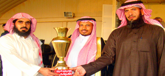 وفي ختام الحفل قام بتسليم الكأس لمالك ومدرِّب الفرس الفائزة بحضور نائبه الأستاذ أحمد العبد المنعم وجمع كبير من محبي وعشاق رياضة الآباء والأجداد، كما تفضَّل مدير عام الميدان الأستاذ محمد بن جار الله الشايع بتسليم جوائز الجمهور بين الأشواط.