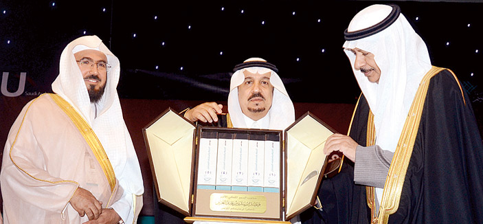 كما شاهد سموه عرضاً تعريفياً يحكي مسيرة كلية الشريعة والدراسات الإسلامية بالجامعة, قبل أن يتفضل بتكريم الرعاة والمشاركين مقدراً لهم مشاركتهم وتشريفهم للمنطقة.
