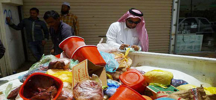 مبيناً : أن البلدية قامت بجولات ميدانية تصحيحية مكثفة بتوجيهات من أمين الأحساء المهندس عادل الملحم ، وبإشراف ومتابعة مدير صحة البيئة في البلدية الدكتور غسان السعدون ، ونتج عن تلك الحملات استبعاد وإيقاف 148 عاملاً مخالفاً للأنظمة الصحية في المحال المتعلقة نشاطاتها بالصحة العامة . من جهته أشار رئيس بلدية العمران المهندس بجاد السبيعي ، إلى أن الحملات التي نفذتها البلدية تم من خلالها مصادرة وإتلاف 539 كيلوغراماً من اللحوم والأسماك والدواجن مجهولة المصدر والغير صالحة للاستهلاك الآدمي . مضيفاً : كما تم مصادرة 191 قطعة من الأواني الغير صالحة للاستخدام.