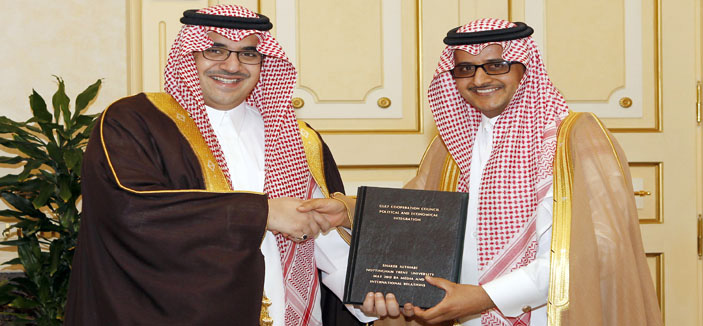 وقدم الذيابي لسموه نسختين من بحثه لدرجتي الماجستير من جامعة سالفورد والبكالوريوس من جامعة نوتنجهام ترنت بالمملكة المتحدة، في تخصصات الصحافة والإعلام والعلاقات الدولية، وذلك بمناسبة تخرجه هذا العام.