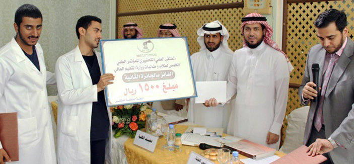 وطالبات الكلية المشاركين في المؤتمر العلمي الخامس لطلاب و طالبات التعليم العالي, بحضور عميد كلية العلوم الطبية التطبيقية والمشرف العام على الملتقى الدكتور خالد بن سليمان الزمامي، وعميد شؤون الطلاب الدكتور مسفر الكبيري ومستشار أمين اللجنة العليا للملتقى العلمي التحضيري الدكتور عمر صلاح الدين ورئيس اللجنة العلمية الدكتور/ وليد صلاح الدين السيد.