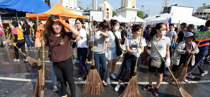 - فتيات تايلنديات ينظفن الشوارع استعداداً للاحتفال بميلاد الملك