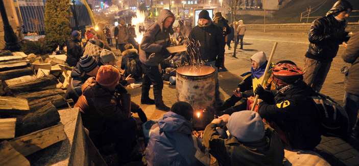 - متظاهرون أكرانيون يحاصرون مقر الحكومة ويتدفؤون بإيقاد النيران
