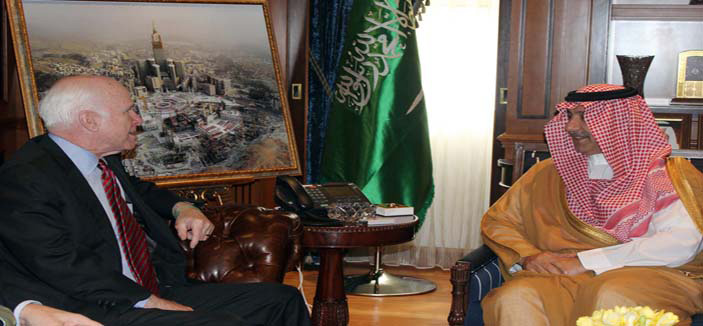 كما استقبل صاحب السمو الملكي الأمير عبدالعزيز بن عبدالله بن عبدالعزيز نائب وزير الخارجية بمكتب سموه بالوزارة أمس عضو لجنة الخدمات المسلحة في مجلس الشيوخ الأمريكي السيناتور جون ماكين. وجرى خلال اللقاء بحث أوجه التعاون بين البلدين الصديقين، وسبل تعزيزها، والقضايا الإقليمية والدولية ذات الاهتمام المشترك. حضر اللقاء الوفد المرافق، فيما حضره من الجانب السعودي نائب وكيل الوزارة للعلاقات الثنائية ومدير الإدارة الأمريكية وأوقيانوسيا السفير الدكتور ناصر بن أحمد البريك.