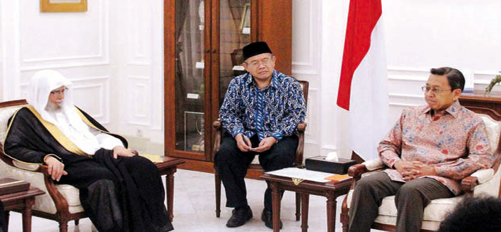 ومن جهته، رحب نائب الرئيس الإندونيسي بمعالي الأمين العام لرابطة العالم الإسلامي، والوفد المرافق، مبينًا أن اندونيسيا تعتز بدينها الإسلامي تسعى دائماً إلى توحيد صفوف الأمة وترى أن رابطة العالم الإسلامي تؤدي نفس الدور الذي تقوم به اندونيسيا. ودعا نائب الرئيس الاندونيسي العالم الإسلامي إلى دعم رابطة العالم الإسلامي والتعاون معها في كافة المجالات لأنها مؤسسة إسلامية عالمية تسعى لتوحيد صفوف الأمة الإسلامية ودعم الأقليات المسلمة في العالم.