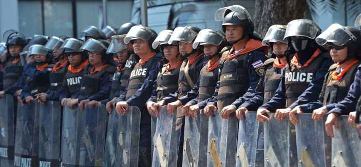 أعلنت السلطات التايلاندية أمس السبت إعادة الحواجز الى شوارع بانكوك قبل تظاهرات يوم الاثنين القادم، في آخر محاولة على ما يبدو للإطاحة بالحكومة بعد أكثر من شهر من الاحتجاجات. وأعلن رئيس مجلس الأمن الوطني برادورن بتاناتابوت أن الشرطة ستقيم حواجز خصوصاً حول مقر الحكومة والبرلمان. وأضاف: أنا وأثق من أنه لن تقع أحداث عنيفة الاثنين. موضحاً أن آلاف من رجال الشرطة سينشرون هناك. ودعا سوثيب ثوغسوبان زعيم المتظاهرين الى آخر تجمع الاثنين في «يوم الحساب» حسب وصفه. وقال الرجل الذي يريد أن يتولى الحكم مجلس من الشعب غير منتخب بدلاً من رئيس الوزراء ينغلوك شيناواترا: سنعلم ذلك يوم الاثنين. وتوقفت التظاهرات بعدة أيام بمناسبة عيد ميلاد الملك الذي يحظى باحترام كبير في تايلاند، وقد تمكنت الحركة في عز الاحتجاج من تعبئة 180 ألف شخص لكن عددهم تراجع كثيراً بعد ذلك. ويريد المتظاهرون إسقاط الحكومة ورئيسة وزرائها الذين يتهمونها بأنها دمية لشقيقها ثاكسين رئيس الوزراء السابق الذي أطاح به انقلاب عسكري في 2006 لكنه ما زال يرمي بثقله على الساحة السياسية من منفاه أيضاً. وبدأت حركة الاحتجاج قبل شهر وتعاظمت الأسبوع الماضي مع احتلال عدة وزارات وإدارات وبلغت ذروتها قبل أيام بمحاولة احتلال مقر الحكومة وسط العاصمة التايلندية بانكوك.