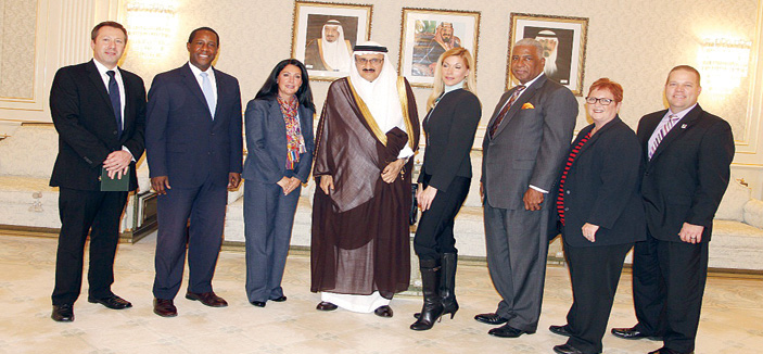 استقبل صاحب السمو الملكي الأمير الدكتور منصور بن متعب بن عبدالعزيز وزير الشئون البلدية والقروية بمكتب سموه بالوزارة صباح أمس وفداً أمريكياً يضم عدداً من عمد بعض المدن الأمريكية والذين يزورون المملكة هذه الأيام, وجرى خلال اللقاء تبادل الأحاديث الودية وبحث الموضوعات ذات الاهتمام المشترك, كما استعرض سموه مع الوفد الزائر مهام الوزارة واختصاصاتها وما تقوم به من جهود لخدمة المواطنين كما تناول اللقاء انتخابات أعضاء المجالس البلدية ومهام ومسئوليات المجلس. الجدير بالذكر أن الوفد سيقوم بزيارة أمانتي الرياض وجدة للاطلاع على مظاهر النهضة الشاملة التي تعيشها المملكة.