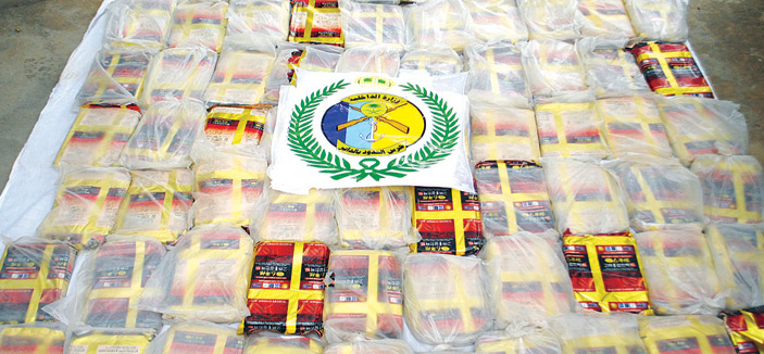 عدد 51 واحد وخمسين قطعة سلاح، وعدد 18 ثمانية عشر ذخيرة، وعدد 16,5 ستة عشر ونصف حبوب مخدرة، وعدد 233188مائتان وثلاثة وثلاثون الف ومائة وثمانية وثمانون كجم قات وعدد 2395 ألفان وثلاثمائة وخمسه وتسعون كجم حشيش , وعدد 39399 تسعة وثلاثون ألف وثلاثمائة وتسعة وتسعون متسللا، وعدد 384 ثلاثمائة وأربعة وثمانون مهربا، وعدد 1305 ألف وثلاثمائة وخمسة كجم مواد غذائية، وعدد 294106 مائتان وأربعة وتسعون ألف ومائة وستة ريال سعودي، وعدد 6105 ستة آلاف ومائة وخمسة كجم شمة، وعدد 509 خمسمائة وتسعة كجم ألعاب نارية، وعدد 4773 أربعة آلاف وسبعمائة وثلاثة وسبعون ماشية، وعدد 2 اثنان حالة إنقاذ بحري. وقال اللواء عبدالعزيز الصبحي, قائد حرس الحدود بجازان: إن هذه الأعداد حصيلة جهود الرجال المخلصين بحرس الحدود بجازان في البر والبحر لحفظ الأمن حدود المسؤولية, وفرض السيطرة الأمنية وكانت لهذه الجهود ثمارها ولله الحمد, وإني أنقل شكر ولاة الأمر لرجال حرس الحدود بجازان المخلصين المرابطين على الحدود لسد الثغور, وأقول لهم: بارك الله فيكم وفي ولائكم وإخلاصكم لهذا الوطن, واستمروا على أداء الأمانة فالوطن يستحق الكثير.
