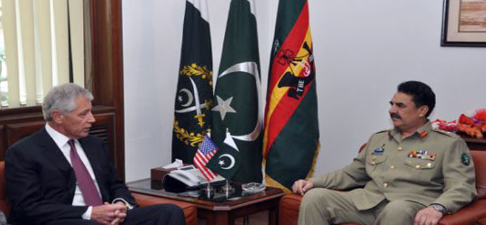 لكنه أشار إلى «توتر في العلاقات» بين البلدين قائلا إن هيغل يريد تسويتها بتعزيز التعاون الثنائي. وتابع أن وزير الخارجية الأميركي يريد «تعزيز شراكتنا (مع باكستان) في مجال الدفاع» وتاكيد دعم واشنطن المتواصل للجيش الباكستاني.