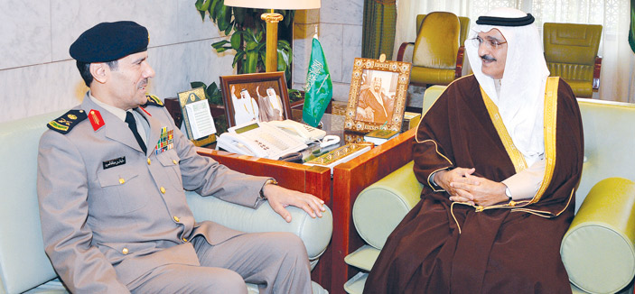 استقبل صاحب السمو الملكي الأمير خالد بن بندر بن عبدالعزيز أمير منطقة الرياض في مكتب سموه بقصر الحكم امس مدير عام الدفاع المدني اللواء سليمان العمرو، وجرى خلال اللقاء تبادل الأحاديث الودية, كما هنأ سموه اللواء العمرو بمناسبة تعيينه مديراً عاماً للدفاع المدني، حضر اللقاء مدير الدفاع المدني بمنطقة الرياض اللواء عابد الصخيري، كما استقبل صاحب السمو الملكي الأمير خالد بن بندر بن عبدالعزيز أمير منطقة الرياض في مكتبه بقصر الحكم أمس مدير عام فرع وزارة العمل بالمنطقة عبدالله بن محمد العليان، وخلال اللقاء هنأ سموه العليان بمناسبة تعيينة مديراً عاماً لفرع الوزارة بمنطقة الرياض، كما نقل العليان تحيات معالي وزير العمل ومعالي نائب وزير العمل لسمو أمير الرياض.