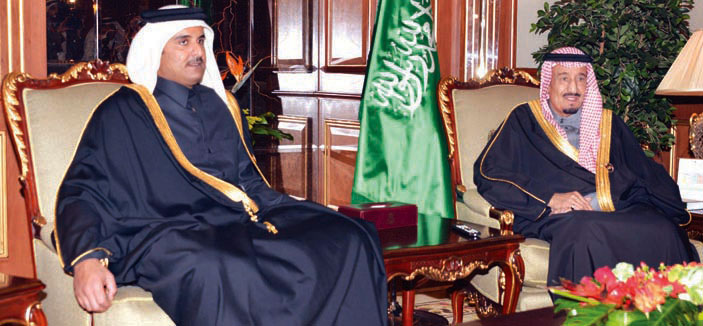 وعقب وصولهم التقطت الصور التذكارية بهذه المناسبة. ثم توجه الجميع إلى قاعة الاجتماع لبدء الجلسة الافتتاحية . من جانب آخر استقبل صاحب السمو الملكي الأمير سلمان بن عبدالعزيز آل سعود ولي العهد نائب رئيس مجلس الوزراء وزير الدفاع في مقر إقامته في الكويت امس صاحب السمو الشيخ تميم بن حمد آل ثاني أمير دولة قطر الشقيقة والوفد المرافق له وذلك على هامش أعمال الدورة الرابعة والثلاثين للمجلس الأعلى لمجلس التعاون لدول الخليج العربية. وجرى خلال الاستقبال بحث ما حققه مجلس التعاون لدول الخليج العربية من إنجازات بما يسهم في تحقيق طموحات شعوب المجلس، بالإضافة إلى استعراض علاقات التعاون بين البلدين الشقيقين وسبل دعمها وتطويرها.
