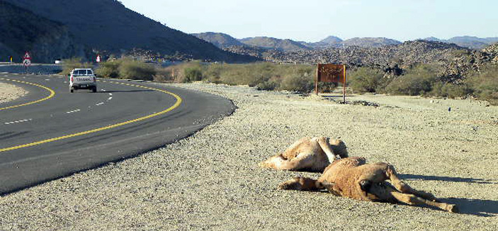رصدت عدسة «الجزيرة» على طريق الجنوب في حدود منطقة الباحة الإدارية جملين نافقين تنبعث منهما روائح كريهة تذمر منها سكان المنطقة وكذلك المسافرون الذين وجهوا انتقادهم للجهات المسئولة على نظافة الطريق الحيوي الهام والعمل على رفع المخلفات منه أولاً بأول وفي مقدمتها الحيوانات النافقة، كما عبر أحد المواطنين الذي يسكن في المنطقة عن استيائه من ترك مثل هذه الحيوانات النافقة لفترة طويلة على قارعة الطريق ومايشكله ذلك من صورة غير حضارية خاصة أنها تقع بين أشهر المناطق السياحية في المملكة هما الطائف والباحة.