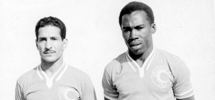 «صورة تاريخية تعود لحقبة الثمانينيات الهجرية من القرن الفائت تظم قائد الهلال الدولي السابق سلطان بن مناحي- شفاه الله- مع زميله المهاجم الكبير سليمان مطر الشهير بلقب (الكبش) الذي انتقل من فريق الوحدة إلى الهلال بتأثير قوي ومباشر من مؤسسه الشيخ عبد الرحمن بن سعيد -رحمه الله - في واحده كانت تعد في تلك الأيام الخوالي من أكبر الصفقات التي كسبها هلال الثمانينيات.
