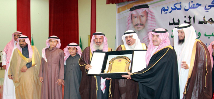 وقد أقيم الاحتفال في مسرح إدارة التربية والتعليم بحضور محافظ شقراء محمد الهلال, ورئيس محكمة شقراء الشيخ عبدالله العثمان, ووكيل المحافظة الأستاذ مشعل العميري, والأديب سعد البواردي, والشيخ عبدالرحمن الفاضل, والوجيه محمد الجميح والمهندس عبدالرحمن البواردي, والشيخ عبدالرحمن المقحم, والأستاذ سامي البابطين, ورؤساء الدوائر الحكومية ومدراء القيادات الأمينة بشقراء.وقد تضمن الحفل كلمة لمحافظ شقراء, قدم فيها شكره وشكر سكان المحافظة على الجهود التي قام بها المهندس الزيد.