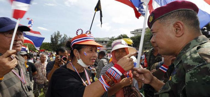 وقال القائد الأعلى للقوات المسلحة التايلاندية تاناساك باتيمابراجورن، الذي ترأس أمس السبت منتدى مع زعيم الاحتجاج المناهض للحكومة سوثيب ثاوجسوبان للمشاركين في الاجتماع إنه يريد أن يرى انتخابات في الثاني من شباط/ فبراير، وفقاً لما هو مقرر، كما اقترح إنشاء «لجنة مركزية» تضمن تنظيم انتخابات حرة ونزيهة، وفقاً لما ذكرته صحيفة «بانكوك بوست». وربما يشكّل موقف الجيش ضربة لحركة الاحتجاج، التي تضغط من أجل إجراء إصلاحات قبل إجراء أي انتخابات. وحلت رئيسة الوزراء التايلاندية ينجلوك شيناواترا في التاسع من الشهر الجاري البرلمان، ودعت إلى إجراء انتخابات جديدة في مواجهة احتجاجات واسعة ضد حكومتها. وقال سوثيب إنه يريد تعيين مجلس شعب ليشرع إصلاحات سياسية قبيل الانتخابات المقبلة. ويمارس سوثيب سياسة الضغط على مجتمع رجال الأعمال والأكاديميين والمؤسسة العسكرية بهدف تأييد برنامجه الإصلاحي، الذي يصفه منتقدوه بأنه غير دستوري وغير ديمقراطي. وأطلقت الحكومة اليوم الأحد منتدى للإصلاح، ودعت إليه أكثر من 100 متحدث من جميع قطاعات المجتمع. ورفض سوثيب والحزب الديمقراطي المعارض حضور فعاليات المنتدى.