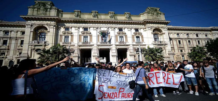 تخللت مصادمات عنيفة الاحتجاجات التي نُظمت السبت ضد سياسة التقشف الحكومية في عدد من المدن الإيطالية، منها روما وتورينو والبندقية. ففي مدينة تورينو شمال غرب البلاد أشعل المتظاهرون قنابل دخان في مبانٍ تابعة للحكومة، وحولوا سماء المنطقة إلى سحب حمراء؛ ما دفع الشرطة إلى استخدام الهراوات ضدهم. وفي البندقية توقفت حركة السير على أحد الجسور فوق القناة الكبرى بالمدينة بعدما فصلت الشرطة بين جماعات من المتطرفين اليساريين واليمينيين، كما شهدت مدينة البحيرات (البندقية) إطلاق قنابل دخان؛ ما جعل الشرطة تلجأ إلى استخدام قنابل الغاز. وفي روما هاجم الفاشيون الجدد مكاتب المفوضية الأوروبية، وانتزعوا علم الاتحاد الأوروبي من ساريته. ألقت الشرطة القبض على أحد المهاجمين، وتم الإبلاغ عن عشرة آخرين. كما ألقت الشرطة القبض على عدد آخر من المتظاهرين في كل من تورينو والبندقية، وأُصيب عدد من رجال الشرطة والمتظاهرين بجروح طفيفة.