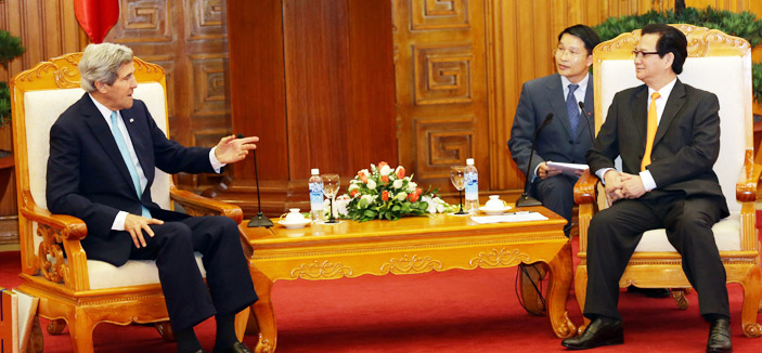 - وزير الخارجية الأمريكي جون كيري أثناء اجتماعه مع رئيس وزراء فيتنام ..أ ف ب
