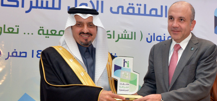 يُذكر أن ملتقى (الشراكة المجتمعية تعاون بناء لتنمية مستدامة) يهدف إلى تعزيز توجه مؤسسات القطاع الحكومي ورجال الأعمال نحو برامج الشراكة المجتمعية الهادفة إلى التنمية المجتمعية المستدامة، وطرح العديد من التجارب الناجحة والمبادرات المتميزة في مجال الشراكة المجتمعية، والتعرف على عوامل نجاحها وإمكانية تعميمها وتطويرها.