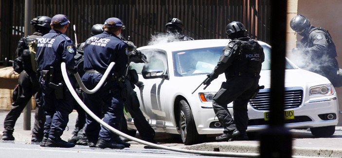- ضبّاط من الشرطة الأسترالية يَسْحبُون رجلاً الى خارج سيارته بعد محاولته اقتحام منطقة تضم مبنى برلمان ولاية نيو ساوث ويلز في سدني. (رويترز)