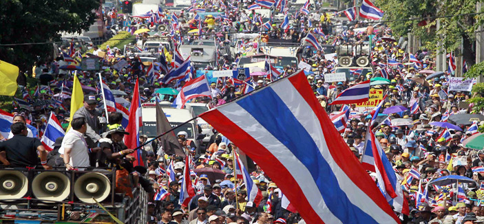 - استمرار الاحتجاجات في تايلاند حيث زحف مئات آلاف من المحتجّين الى منطقة تضم مباني حكومية للضغط على رئيس الحكومة للتنازل عن الرئاسة. (رويترز)