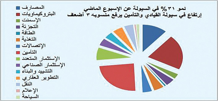 - 29.4 مليار ريال السيولة المجمعة للسوق بنمو حوالي 31% عن الأسبوع الماضي.