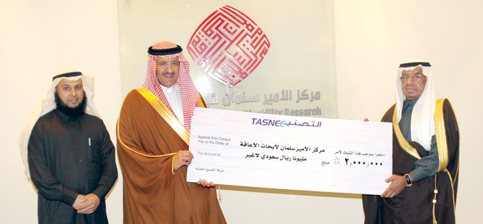 استقبل صاحب السمو الملكي الأمير سلطان بن سلمان بن عبدالعزيز رئيس مجلس إدارة مركز الأمير سلمان لأبحاث الإعاقة، بمقر المركز بالرياض يوم الخميس 12 ديسمبر 2013م، وفد شركة التصنيع الوطنية الذي ترأسه سعادة المهندس مبارك بن عبدالله الخفرة رئيس مجلس الإدارة. وقدم وفد التصنيع شيكاً بمبلغ مليوني ريال سعودي، دعماً لمركز الأمير سلمان لأبحاث الإعاقة تمثل الدفعتين الرابعة والخامسة من دعم سنوي دأبت التصنيع على تقديمه ضمن عضويتها للمركز خلال السنوات الخمس الماضية. وأشاد سمو الأمير سلطان بمبادرات التصنيع ومشاركاتها الفاعلة في المسؤولية الاجتماعية التي تعتبر قضايا الإعاقة أحد أهم محاورها.