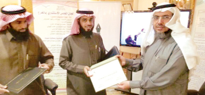 وتناول الجليفي عماحدث لطلاب ثانوية الهياثم, مثمنا في الوقت نفسه وقفة محافظ محافظة الخرج الأستاذ مساعد السالم ومدير مستشفى الملك خالد بالخرج د. ماجد مغربي وكل من ساند ودعم , أثر ذلك أعلن أمين المجلس عن تكريم المجلس نورة الشلوي بدرع قدمته لها نفلاء القحطاني ، نائبة رئيس المجلس. وكذلك تكريم أسماء القويفلي، نظير تصميمها لشعار المجلس.