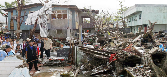 - تفقد الأمين العام للأمم المتحدة بان كي مون امس مدينة تاكلوبان عاصمة إقليم ليتي في الفلبين الأكثر تضررًا من الإعصار هايان للوقوف على حجم الأضرار التي خلفها الإعصار الذي ضرب الفلبين الشهر الماضي، وناقش بان كي مون جهود إعادة الإعمار مع المسؤولين الفلبينيين. وقدم الرئيس الفلبيني بنينو أكينو الشكر للأمين العام على الدعم المقدم من العديد من وكالات الأمم المتحدة في جهود الإغاثة وإعادة الإعمار... أ ف ب