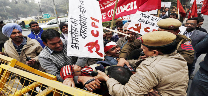 - مؤيدو الحزب الشيوعي في الهند في شجار مع الشرطة الهندية قرب المركز الأمريكي... رويترز.