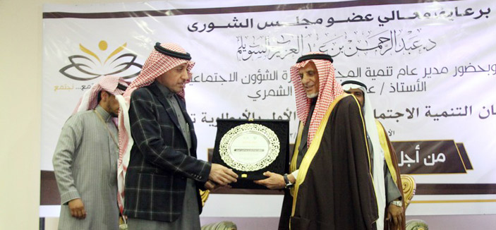 بعد ذلك تم تكريم المتحدثين في الملتقى، حيث سلم رئيس مركز الأرطاوية درعاً تذكارياً لمعالي الدكتور عبدالرحمن السويلم، ودرعاً آخر لمدير عام تنمية المجتمع بوزارة الشؤون الاجتماعية، ودرعاً للدكتور خالد آل عوض، عقب ذلك بدأ البرنامج التدريبي وورش العمل.