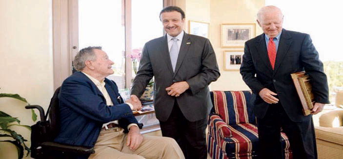 استقبل فخامة الرئيس الأمريكي الأسبق جورج بوش «الأب» في مكتبه بمدينة هيوستن بولاية تكساس أول أمس صاحب السمو الملكي الأمير سلطان بن سلمان بن عبد العزيز رئيس الهيئة العامة للسياحة والآثار بمناسبة زيارته للولايات المتحدة الأمريكية لافتتاح معرض «طرق التجارة في الجزيرة العربية - روائع آثار المملكة العربية السعودية عبر العصور» الذي يستضيفه متحف الفنون الجميلة في هيوستن. حضر الاستقبال معالي وزير الخارجية الأمريكي الأسبق جيمس بيكر.