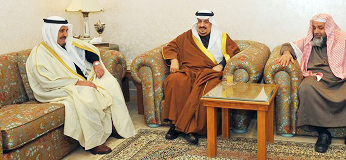 حيث كان في استقبال سموه عند وصوله لمقر العزاء رئيس لجنة الأهالي بالقصيم الشيخ إبراهيم بن عبد العزيز الربدي , وأبناؤه وأبناء الفقيد رحمه الله .
