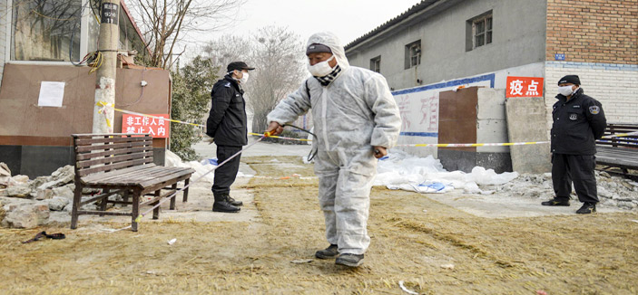 - أحد رجال مكافحة الأمراض المعدية بالصين يقوم برش المبيدات التي تكافح مرض إنفلونزا الطيور وذلك بعد استكشاف مجموعة كبيرة من الدواجن تحمل هذا الفيروس حيث تمت إبادة 4000 دجاجة مريضة بإنفلونزا الطيور. رويترز