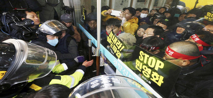 - احتجاجات عمالية في كوريا الجنوبية حيث قامت نقابة العمال بالاحتجاج تعاطفاً مع عمال السكة الحديدية الذين نفذوا إضراباً على قرار الحكومة خصخصة هذا القطاع. رويترز