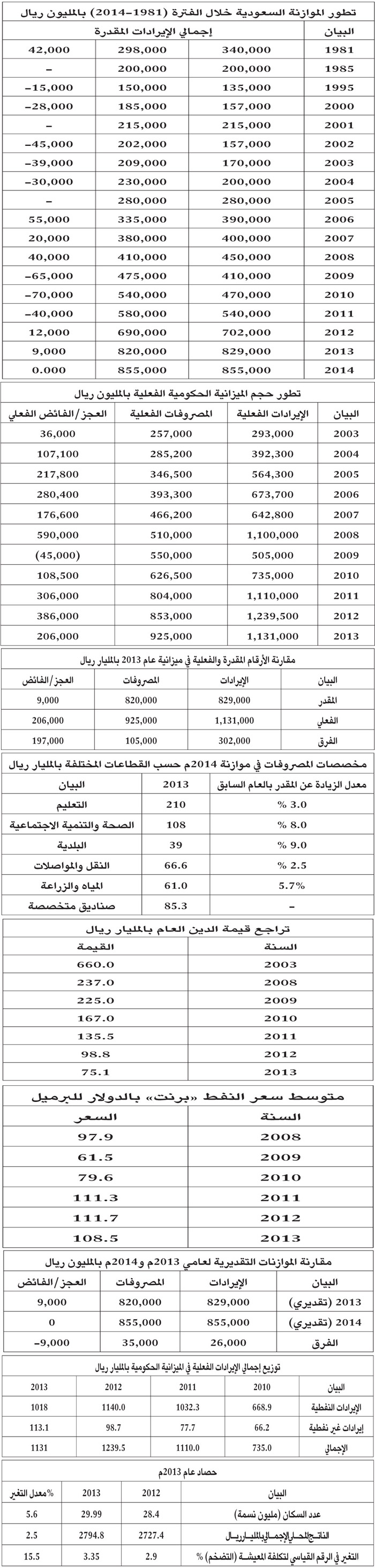 بفائض قدره 206 مليار ريال أنهت ميزانية المملكة العام 2013م ، ورغم أن هذا العام كان متخماً بالمستجدات السياسية والاقتصادية الإقليمية والعالمية، فقد استمر الاقتصاد السعودي في مفاجأة العالم كله بالاستمرار للعام الثاني على التوالي في تحقيق ميزانية ضخمة، تعد ثاني أكبر ميزانية في التاريخ الاقتصادي للمملكة، بقيمة إيرادات بلغت 1131 مليار ريال، وأعلى مصروفات حكومية بقيمة 925 مليار ريال .. فقد تفوق هذا العام على العام السابق (2012م) بأنه يحسب كالعام الأعلى في تاريخ النفقات الحكومية على الإطلاق . ولأول مرة تسجل الإيرادات غير النفطية هذا العام مستوى قياسيا فوق المائة مليار ريال، محققة نموا يفوق نمو الإيرادات النفطية .. فالإيرادات النفطية تأثرت بحالة التراجع التي سجلها مستوى الأسعار العالمية للنفط خلال عام 2013م، وتراجعت من 1140 مليار ريال في العام السابق إلى 1018 مليار ريال هذا العام .. لذلك فإن النمو في الإيرادات غير النفطية قد عوض النقص في الإيرادات النفطية، وحافظ على مستوى إجمالي الإيرادات الحكومية من أن تتراجع بقدر كبير.