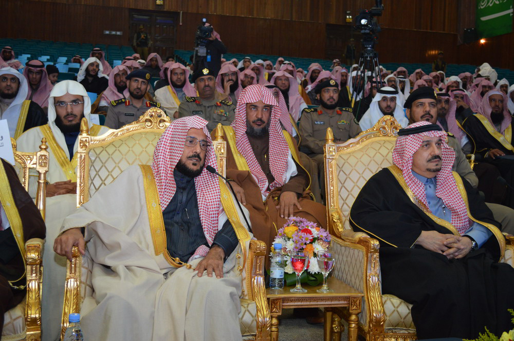 وقد أقيم حفل خطابي بهذه المناسبة بدأ بدشين سموه فور وصوله مقر الحفل الدورات ثم القرآن الكريم، أعقبه كلمة معالي الرئيس العام لهيئة الأمر بالمعروف والنهي عن المنكر الشيخ الدكتور عبداللطيف بن عبدالعزيز آل الشيخ رحب من خلاها بصاحب السمو الملكي أمير منطقة القصيم وجميع الحضور، مشيراً إلى أن تدشين سموه للدورات في تفعيل دور عضو هيئة الأمر بالمعروف والنهي عن المنكر في تعزيز الأمن الفكري ، لهو دعم وفخر لمنسوبي الهيئة ، مبيناً أن الأمر بالمعروف والنهي عن المنكر هو شعيرة من شعائر الإسلام التي أمر الله بها هذه الأمة وميزها بهذه الشعيرة ، التي تهدف لصلاح وبناء الإنسان في دنياه وآخرته ، لافتاً الى أن المملكة قامت بنشر عقيدة التوحيد التي أنشأها الإمام محمد بن سعود - رحمه الله - وأحياها الإمام المجدد شيخ الإسلام محمد بن عبدالوهاب - رحمه الله - مشيراً إلى أن هذه الدولة المباركة قائمة على تحكيم كتاب الله وسنة نبينا محمد صلى الله عليه وسلم ، منذ عهد الملك المؤسس الملك عبدالعزيز بن عبدالرحمن - طيب الله ثراه - وحتى العهد الحاضر تحت قيادة خادم الحرمين الشريفين الملك عبدالله بن عبدالعزيز - حفظه الله - الذي أسس ودعم عمل الأمر بالمعروف والنهي عن المنكر ، وأبان معاليه أنه من خلال الدعم الكبير لعمل الهيئات من قبل الدولة ، ارتأت هيئة الأمر بالمعروف والنهي عن المنكر ممثلة بجميع منسوبيها أن يكون هناك مساهمة لتحصين المجتمع من خلال تعزيز الأمن الفكري الذي دعمه وقام عليه الأمير نايف بن عبد العزيز - رحمه الله - حيث أنشأ وحدة للأمن الفكري بالرئاسة العامة لهيئة الأمر بالمعروف والنهي عن المنكر تعنى بتعزيز الأمن الفكري لمنسوبي الهيئات حتى يكونوا عوناً للعلماء في تحصين فكر الناشئة ومن ليس لديه الدراية الكاملة في تحصين الفكر ، مبيناً أن الأمن الفكري هو الأهم والأساس في حماية الفكر من خلال تأصيل عقيدة التوحيد الخالص ومن خلال معرفة النصوص الشرعية والعمل بموجبها وفق منهج السلف الصالح وهما الضمانة التي يمكن أن يتحصن بها الفكر الذي هو مناط كل الأحكام ، لافتا إلى أن من الأمن الفكري الحرص والاهتمام بتربية الناشئة وتوجية الأبناء والحرص على متابعة ما يطلعون عليه وما يقرؤن منه ، محذراً من الفكر الضال الذي يعشش في بعض العقول التي لا تريد للمسلمين إلا الشر والوبال ، آملاً من الجميع الالتفاف لولاة الأمر والعلماء وأنا تأخذ الفتوى والعلم الشرعي إلا ممن عرف عنهم الصلاح والتقى والخير والحكمة من العلماء الصالحين، مبيناً أن الأمن والأمان من أهم الأمور التي تقوم عليها المجتمعات ، داعياً المولى عز وجل أن يحفظ على بلادنا نعمة الأمن والاستقرار .