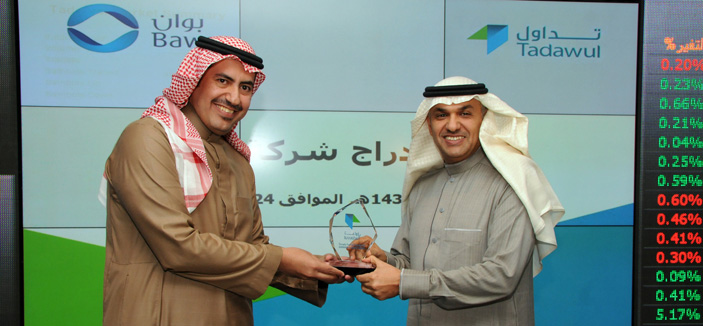 وقال: في هذا اليوم نحتفل معكم بإدراج وبدء تداول أسهم شركة بوان في السوق المالية السعودية، وهو خامس إدراج يشهده السوق السعودي خلال العام 2013؛ ما يرفع من عدد الشركات المدرجة ضمن قطاع التشييد والبناء إلى 16 شركة، الذي من خلاله نؤكد سعينا المتواصل إلى التطوير والتوسُّع في السوق بالتنسيق مع هيئة السوق المالية لاجتذاب المزيد من الشركات للإدراج في السوق، إضافة إلى التنوع في المنتجات والخدمات المقدمة للمستثمرين.