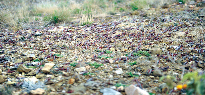 وتأتي هذه الأسراب بأعداد خفيفة نظرًا لأعمال الرش التي بدأت فيها إدارة شؤون الزراعة بالمنطقة من جهة القطاع التهامي وتحديداً محافظة قلوة ، فيما يؤكد مدير عام الشؤون الزراعية بالمنطقة المهندس سعيد بن جار الله الغامدي أن الإدارة ستواصل برنامجها لمكافحة أسراب الجراد نظراً لتأثيرها السلبي على المزروعات والمناحل.