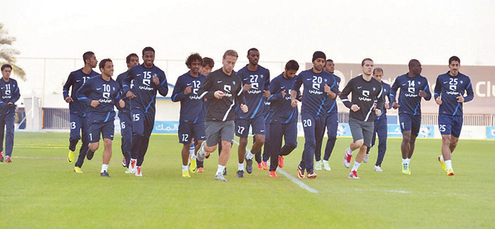 إلى ذلك أجرى الفريق الكروي الأول عصر أمس تدريبه الرئيس تحضيراً لملاقاة ضيفه «الاتفاق» عصر غد في استاد الملك فهد الدولي بالرياض ، واشتمل المران على الجانب الفني، فرض خلاله مدير الجهاز الفني «سامي الجابر» عدد من التطبيقات التكتيكية، قبل أن يختتمه بمناورة على منتصف مساحة الملعب شهدت مشاركة (ناصر الشمراني ونواف العابد)، في الوقت الذي واصل فيه الثنائي (عادل هرماش وسالم الدوسري) برنامجيهما التأهيليين؛ نظير تعرّضهما لكدمات خفيفة أثناء لقاء الرائد ويرجح بذلك غيابهما عن مباراة الاتفاق لعدم اكتمال جاهزيتهما يذكر أنّ الفريق سينهي تحضيراته للمباراة بمران مغلق اليوم.