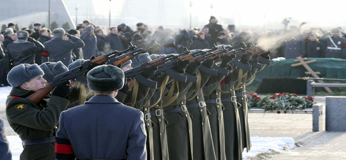 - موسكو - جنود من حرس الشرف الروسي يطلقون من بنادقهم تحية أثناء جنازة ميخائيل كلاشينكوف، المصمم الرئيسي لسلاح الكلاشينكوف... رويترز