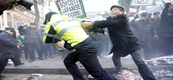 - سول - احتجاجات في كوريا الجنوبية بسبب زيارة رئيس وزراء اليابان لنصب جنود يابانيين سقطوا خلال الاحتلال الياباني للصين وكوريا... رويترز
